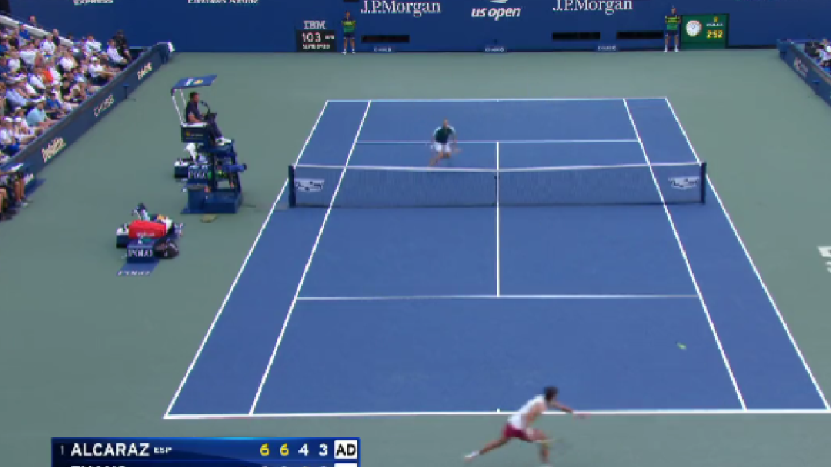 Carlos Alcaraz dejó instantes para el recuerdo en su duelo ante Daniel Evans en tercera ronda del US Open 2023, en un partido que se prestó a puntos espectaculares e intercambios plagados de magia. El británico subió el nivel en el tercer set y se las prometía felices en la cuarta manga, pero se topó con la mejor versión del español. Prueba de ello es el punto con el que consiguió el break que, a la postre, significó su victoria en cuatro parciales. La velocidad de piernas, elasticidad y precisión del murciano siguen asombrando en Nueva York.