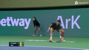 [pixels-player]Recuerda a aquel punto que protagonizó Fabio Fognini hace años. Holger Rune se llevaba hoy el punto ante Alex De Miñaur en la semifinal del ATP 250 de Estocolmo después de que su raqueta cayera al suelo tras restar el servicio del australiano. Alex fue a lo seguro en un remate prácticamente a puerta vacía. Tanto aseguró De Miñaur que mientras la bola llegaba a Rune, Holger ya estaba listo para seguir con el juego.