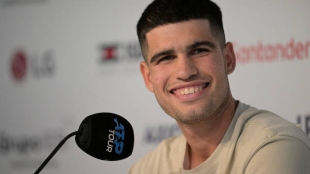 Carlos Alcaraz tiene un gran respeto y admiración por todos los miembros del Big 3, y con quien ha podido pasar menos tiempo es con Roger Federer. El joven murciano tiene clavada la espinita de no haberse enfrentado nunca al suizo, aunque sí mantuvo una sesión de entrenamiento con él en Wimbledon 2019, gracias a que Juan Carlos Ferrero se lo pidió al helvético. Lo quee parece claro es que este año, allá por el mes de septiembre, Carlitos podrá compartir tiempo con Roger ya que está inscrito en la Laver Cup 2024, competición organizada y gestionada por Team8, agencia de Federer, estando él siempre presente ese fin de semana. Cuestionado por la posibilidad de pedirle algún consejo y charlar con él, Alcaraz dio su veredicto en una entrevista con Olé. "No sé si le pediré consejos, pero espero que se me ocurra algo. Lo que sí tengo es claro es que me pondré muy nervioso. La verdad es que me encantaría poder charlar un rato con él ya que nunca he tenido esa oportunidad", manifestó el murciano.